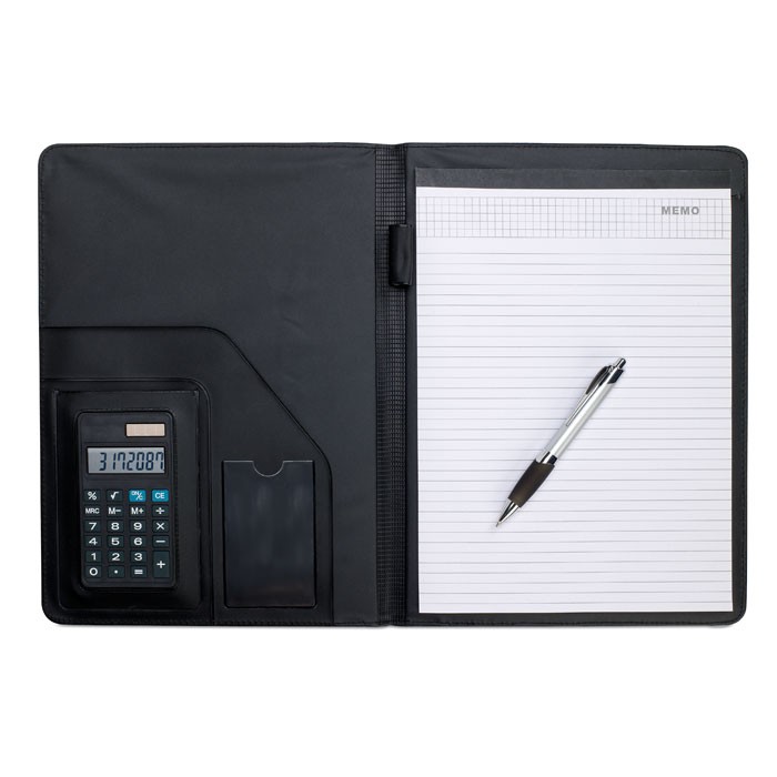 Χαρτοφύλακας A4 με αριθμομηχανή. Περιλαμβάνει στυλό με μπλε μελάνι και σημειωματάριο 20 σελίδων.
