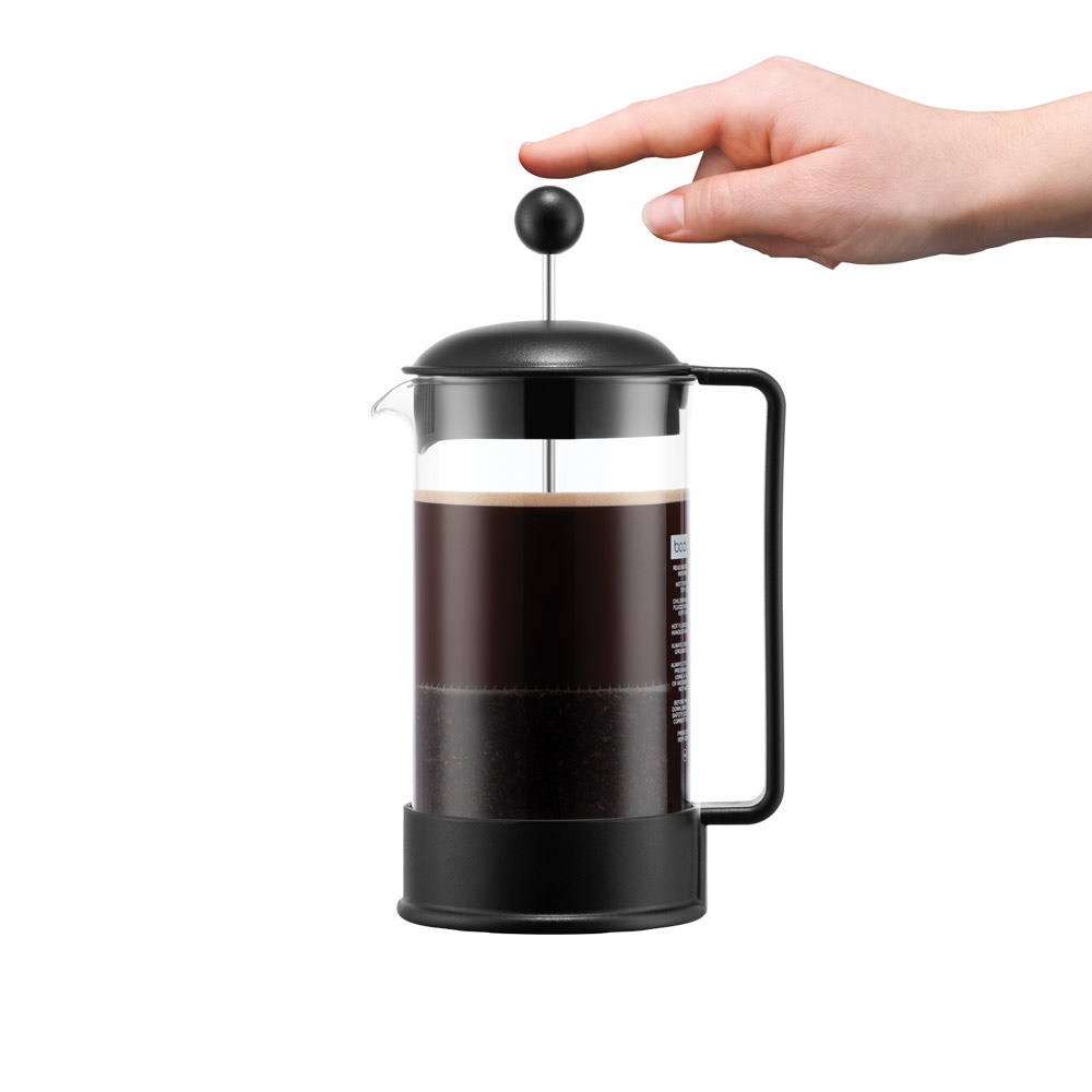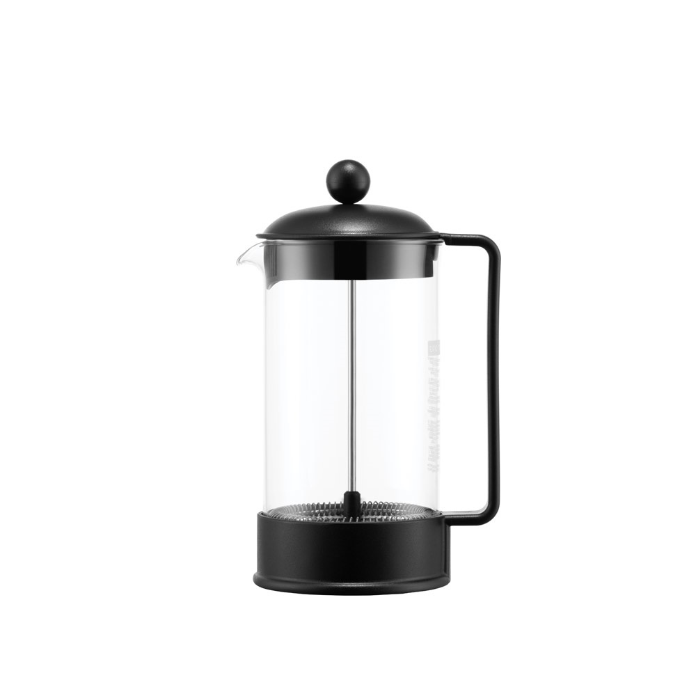 Καφετιέρα γαλλικού τύπου με δοχείο από βοριοπυριτικό γυαλί υψηλής ποιότητας. Το γυαλί είναι ανθεκτικό στη θερμότητα και δεν αλλοιώνει τη φυσική γεύση του καφέ. Διαθέτει έμβολο από ανοξείδωτο χάλυβα και επαναχρησιμοποιούμενο φίλτρο που εξάγει την καλύτερη γεύση από τους κόκκους καφέ, αφήνοντας ελάχιστο ίζημα στο φλιτζάνι. Η δομή, η λαβή και το θολωτό καπάκι του είναι πολύ ελαφριά και κατασκευασμένα από υλικό χωρίς BPA. Η καφετιέρα Brazil, που αναπτύχθηκε τη δεκαετία του 1980, είναι ένα από τα κλασικά μοντέλα που συνεχίζουν να αντέχουν στις ανάγκες πολλών γενεών. Είναι ασφαλής στο πλυντήριο πιάτων. Έχει χωρητικότητα έως και 1 λίτρο. Παραδίδεται σε κουτί δώρου. 141 x 230 x 107 mm