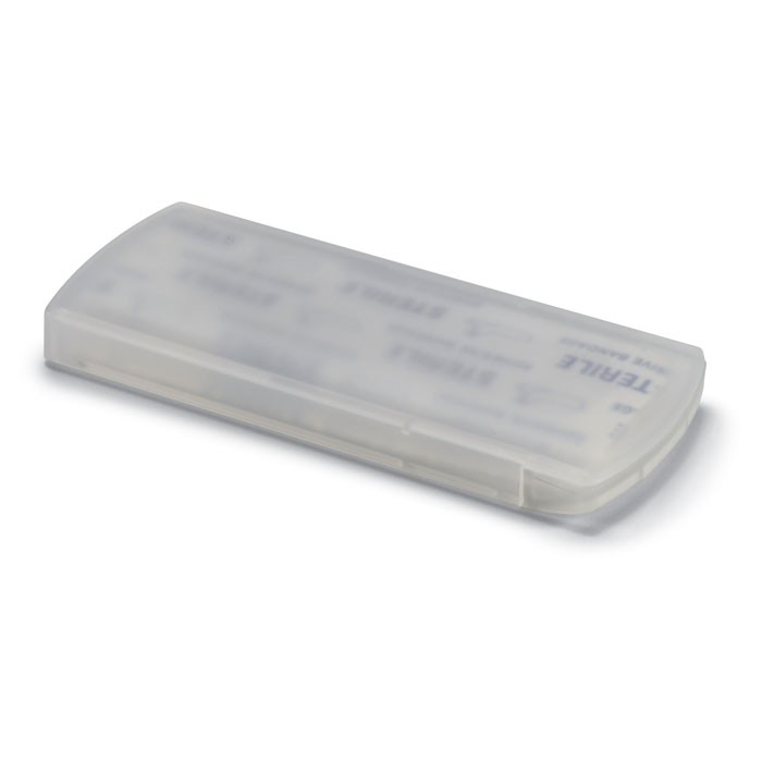 Συμπαγής πλαστική θήκη με 5 αυτοκόλλητα τσιρότα.
