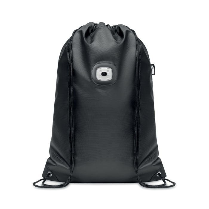 Τσάντα με κορδόνια από 420D RPET με αποσπώμενο φως COB στο μπροστινό μέρος. Περιλαμβάνεται μπαταρία.