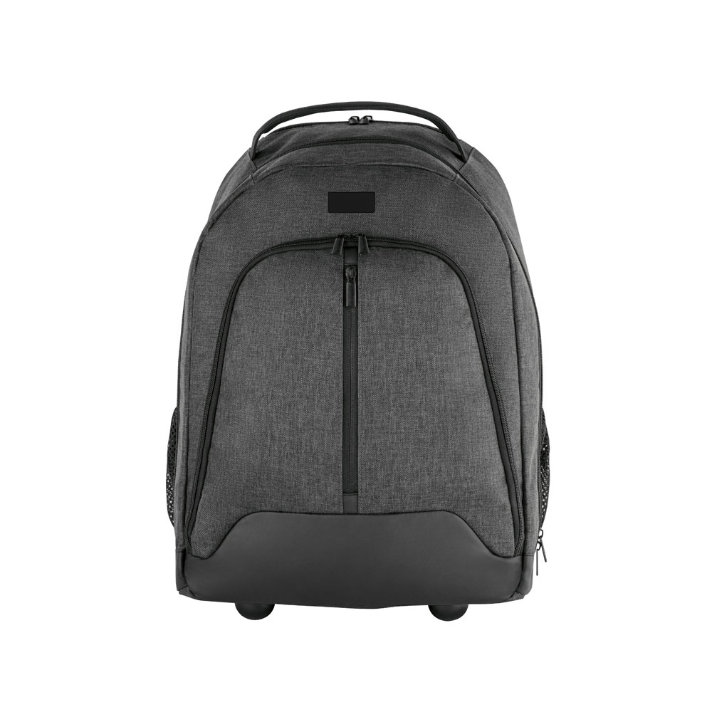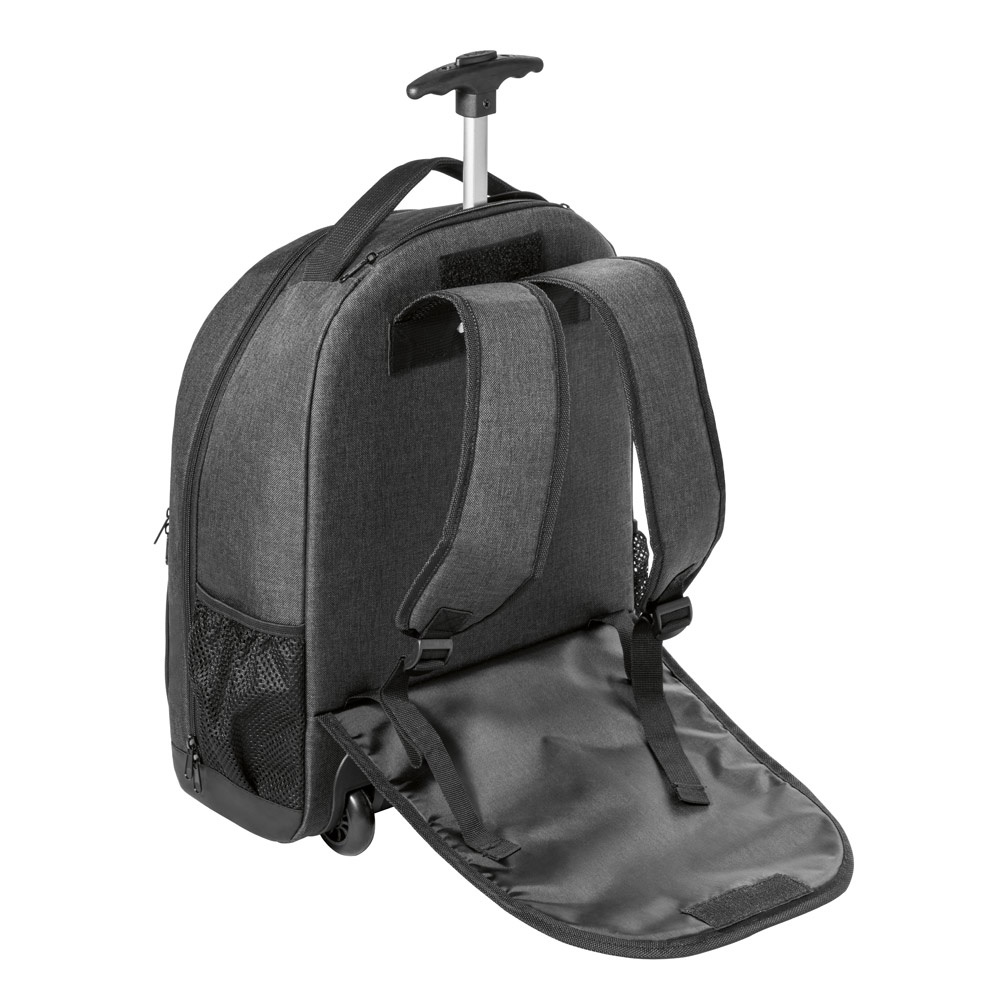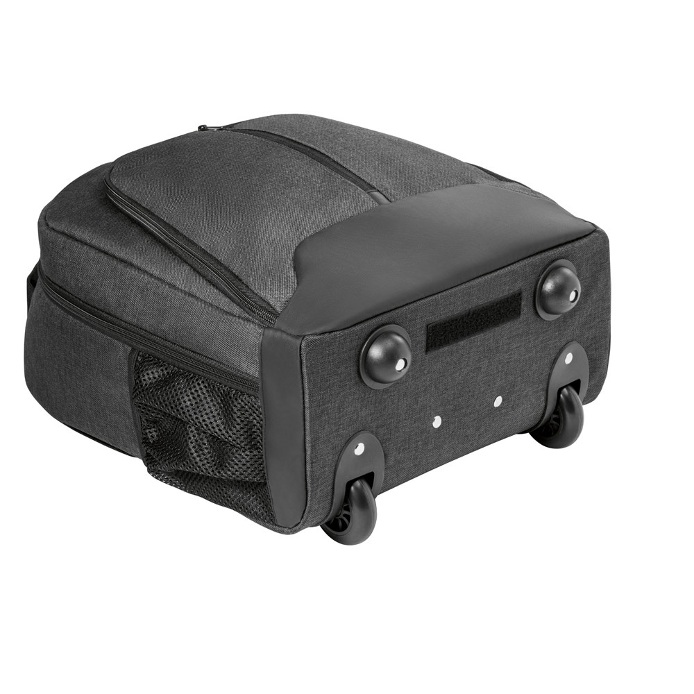 Τρόλευ σακίδιο για φορητό υπολογιστή σε υψηλή πυκνότητα 600D και αδιάβροχο πολυεστέρα 600D. Κύριο διαμέρισμα για φορητό υπολογιστή με οθόνη έως 15.6". Περιέχει πλαϊνές τσέπες με πλέγμα και μπροστινή τσέπη με διπλό φερμουάρ. Τρόλευ σακίδιο με προστατευτικά τροχών και μεταλλική λαβή με δυνατότητα επέκτασης. Η πλάτη και οι λαβές είναι επενδεδυμένες. Περιλαμβάνει αφαιρούμενη μαγνητική μεταλλική πλάκα για προσαρμογή. Χωρητικότητα έως 21 L. 340 x 430 x 170 mm | Ταμπελάκι: 50 x 20 mm