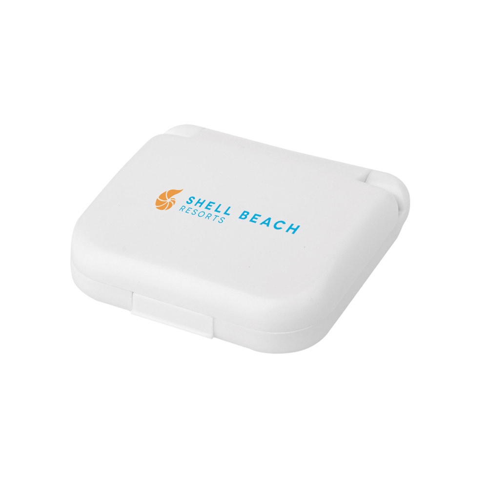 Convenient and lightweight travel sewing set. Sewing kit consisting of 3 pins, 3 needles, 1 pair of tweezers, 1 pair of scissors, 1 needle threader, 1 safety-pin, 2 buttons, 2 hooks and eye closures and 6 spools of thread in several colours. Supplied in a hard case. 70 x 21 x 65 mm