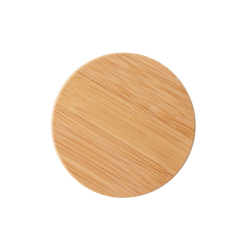 Double wall air-insulated borosilicate glass travel cup with bamboo lid. Cup with a capacity of up to 250 mL, ideal for cold or hot liquids. The silicone insulation lid prevents spillages when you are on the move. Microwave and dishwasher safe, when the lid is removed. Supplied in a kraft paper gift box. ø89 x 91 mm