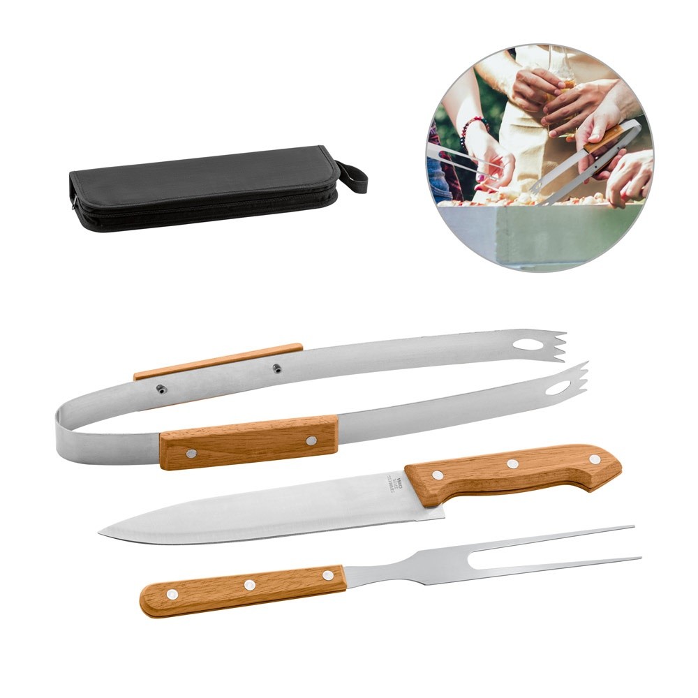 Σετ απο τρία εργαλεία μπάρμπεκιου σε θήκη