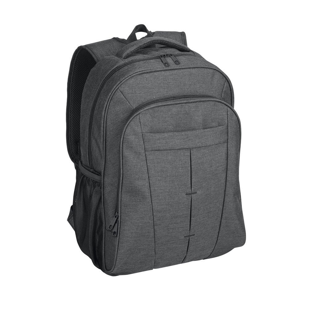 Σακίδιο φορητού υπολογιστή έως 17" σε υψηλή πυκνότητα 600D. Επένδυση στο κύριο διαμέρισμα με φερμουάρ, το οποίο περιέχει ένα διαχωριστικό με επένδυση και αρκετές εσωτερικές τσέπες. Έχει δύο πλαϊνές τσέπες και δύο μπροστινές τσέπες, μία με φερμουάρ. Ιμάντες με επένδυση και πλάτη, με σύστημα στήριξης με επένδυση για την πλάτη. Χωρητικότητα έως 24 L. 340 x 450 x 175 mm