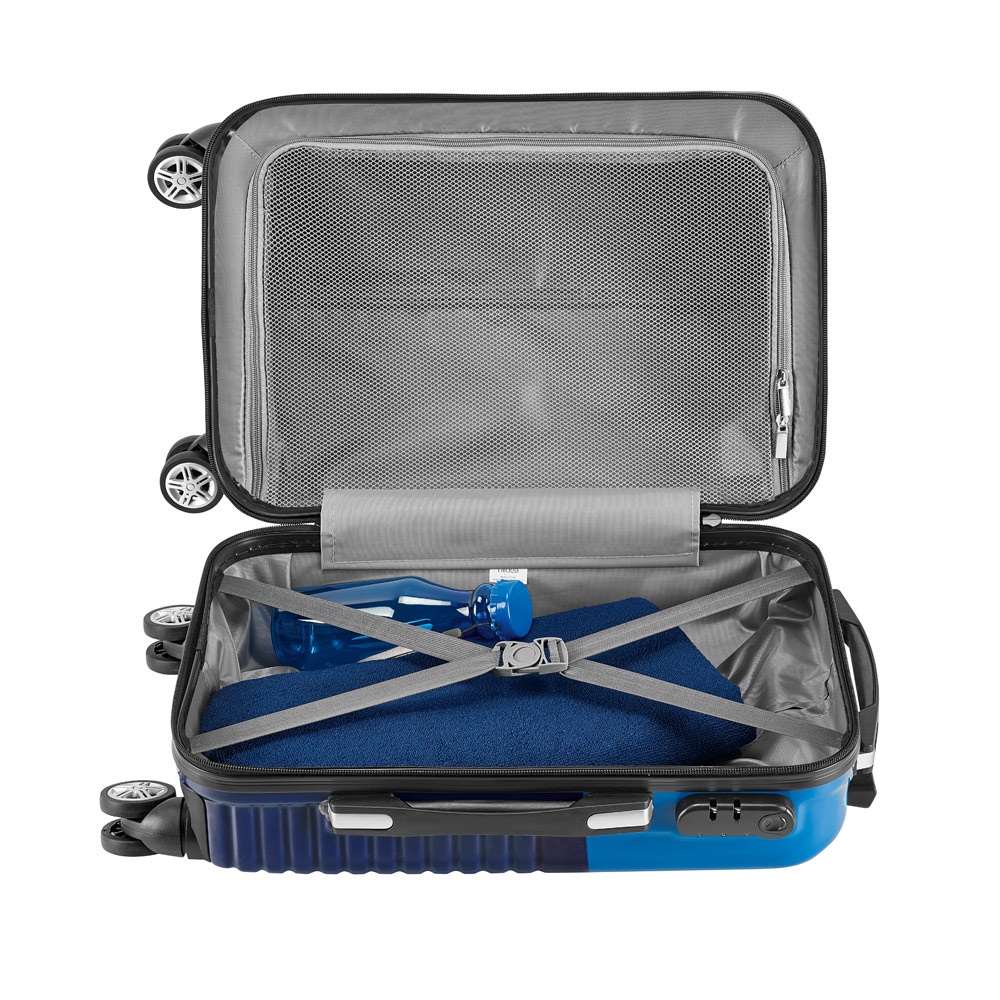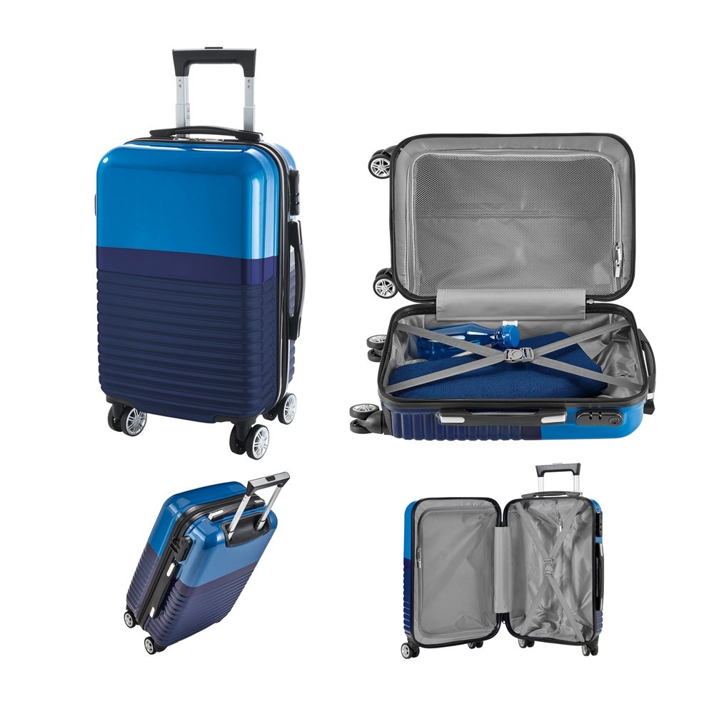 Τρόλεϊ ABS και PC με εσωτερικό επένδυση και διαχωριστικό. Περιέχει 4 διπλούς περιστρεφόμενους τροχούς, επεκτάσιμη λαβή αλουμινίου, με ελατήριο. Στο πλάι, έχει κλειδαριά ασφαλείας με κωδικό. Αυτό το καροτσάκι έχει χωρητικότητα έως 33 L και βάρος 2.70 kg. 335 x 550 x 230 mm