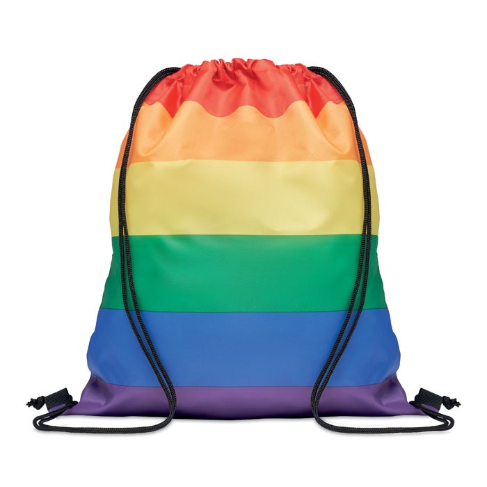 Tσάντα με κορδόνια στα χρώματα του ουράνιου τόξου σε 210D RPET πολυεστέρα.