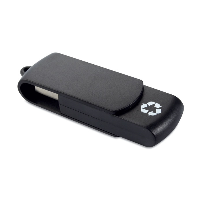 Memory stick με περιστρεφόμενο μηχανισμό κατασκευασμένο από 100% ανακυκλωμένο πλαστικό υλικό με τυπωμένο το λογότυπο της ανακύκλωσης.