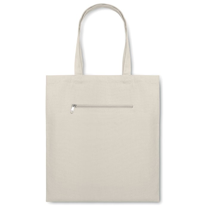 Τσάντα αγορών καμβά με χειρολαβή και μπροστινή τσέπη με φερμουάρ. 280 gr / m².