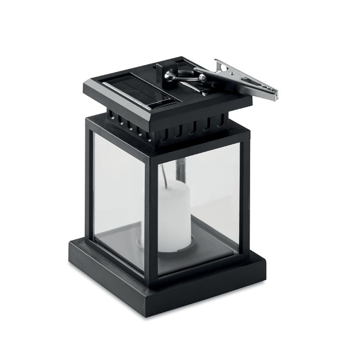 Ηλιακό φανάρι εξωτερικού χώρου με λαμπτήρα LED τύπου κεριού. Τσέρκι και κλιπ από πάνω. Περίπου 5 ώρες λειτουργίας. Συμπεριλαμβάνεται μπαταρία 300 mAh NI-MH. IP44.