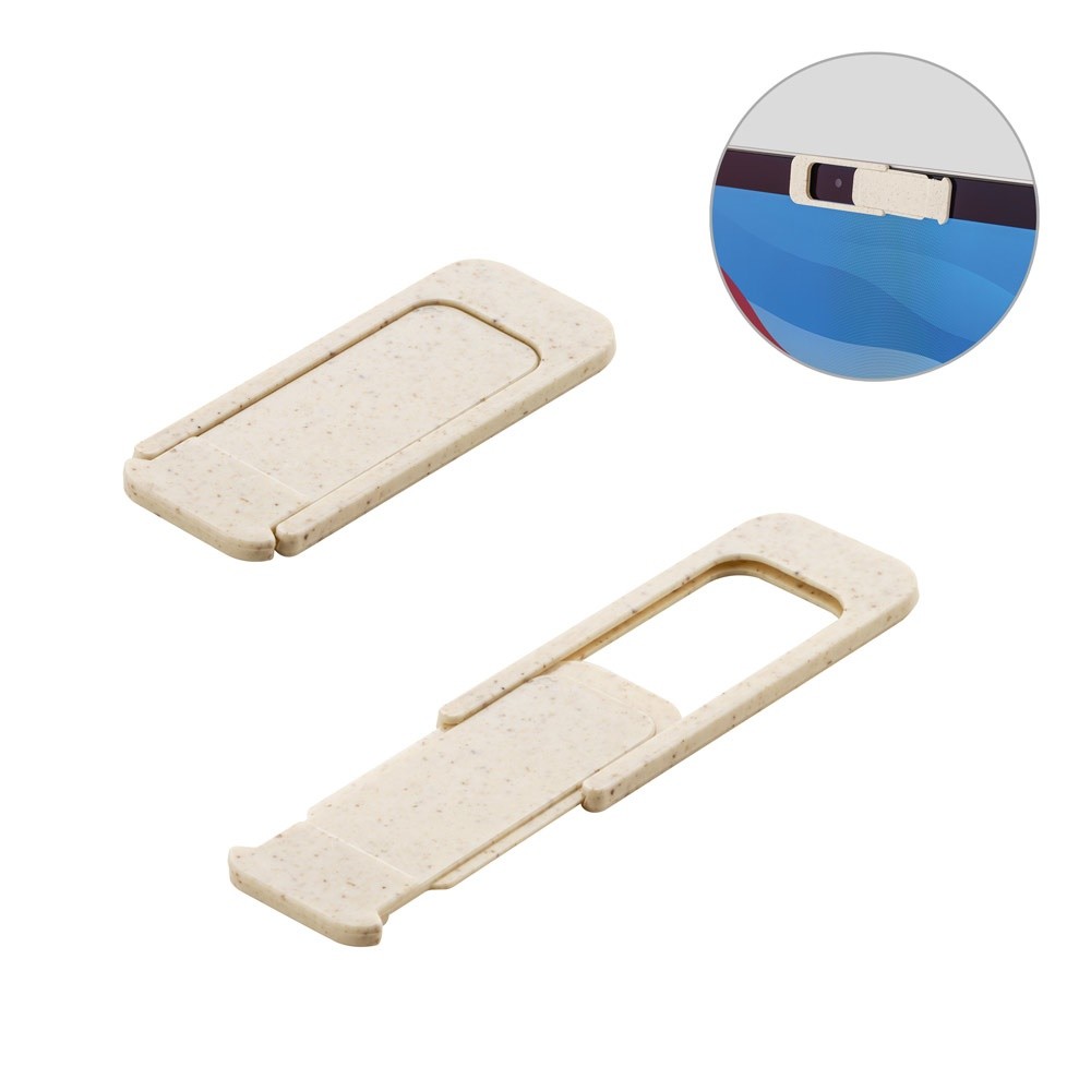 Προστατευτικό κάμερας από ίνες από άχυρο σίτου και PP με συρόμενο κάλυμμα και αυτοκόλλητο στο πίσω μέρος. Το μέγεθος αυτού του προστατευτικού είναι universal και κατάλληλο για smartphone, tablet και φορητό υπολογιστή. 42 x 17 mm | Ανοιχτό: 65 x 17 mm