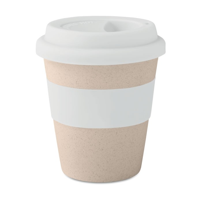 Ποτήρι μονού τοιχώματος από ίνες μπαμπού 40% και PP 60% με καπάκι σιλικόνης και λαβή. Χωρητικότητα 350 ml. Δεν είναι κατάλληλο για χρήση σε φούρνο μικροκυμάτων.